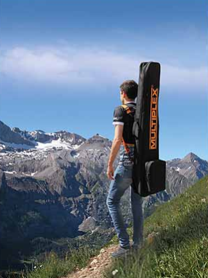 With our new MULTIPLEX model bag, or carrying backpack for glider models. Thus, the practical transport is secured on foot or by bike to the model airfield. Inside there are three separate compartments for the wings and fuselage. The external patch pocket is ideal for the handheld transmitter and accessories. The two backpack straps are adjustable in length and can also be used as a shoulder strap.