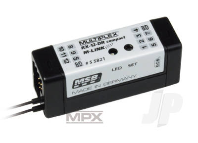 The outstanding features of the new "compact" series of MULTIPLEX receivers are their slim format and top-level performance. These receivers are primarily aimed at glider pilots who fly F3B and F3J models, and require high quality and excellent security. The "compact" series of receivers contain the same technology as the "pro" receiver series intended for large-scale models. This means that they feature two complete receive sections (DR = Dual Receiver) and high-performance signal pre-amplifiers. The RX-12-DR compact M-LINK now ranks as the smallest, highest-performing twelve-channel receiver available anywhere!