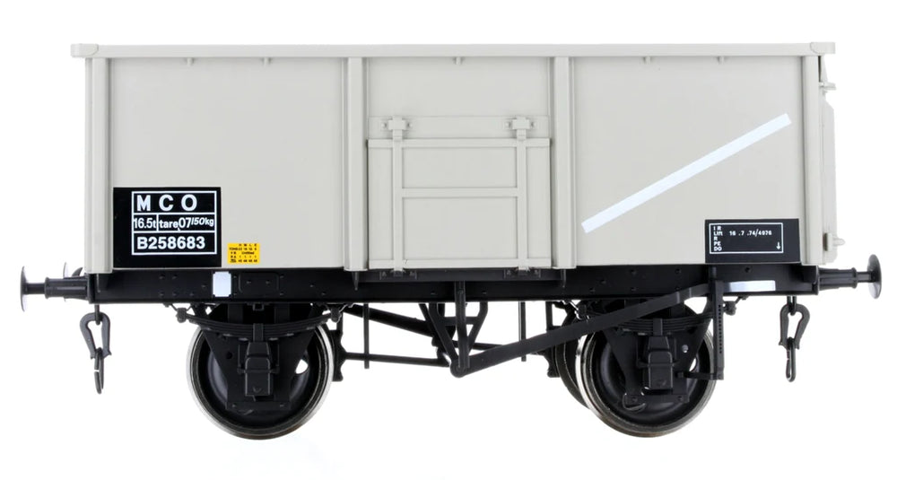British Railways standardised on the 16 Ton mineral wagon and constructed nearly 240,000 wagons between 1950 and 1959. The main use was for shipping of coal although sugar beet, scrap metal, spoil and aggregates were also carried. The majority approximately197,000 were constructed to Diagram 1/108. These had welded bodies with top flap doors, and apart from 10,000 all had one-sided Morton brake rigging.