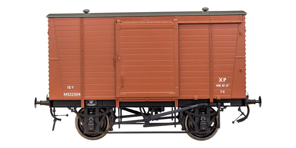 Between 1935 & 1936 7,500 12 ton vans were constructed to Diagram D1897, Lots 823,824 & 825 being vacuum fitted whilst Lot 826, 838, 839 and 840 was unfitted. Further similar vehicles were built up to 1945. Many non-fitted Vans were subsequently fitted by BR with automatic vacuum brakes, the pipes however were ‘coach fashion’ and did not have the LMS ‘wagon type’ upright pipe.