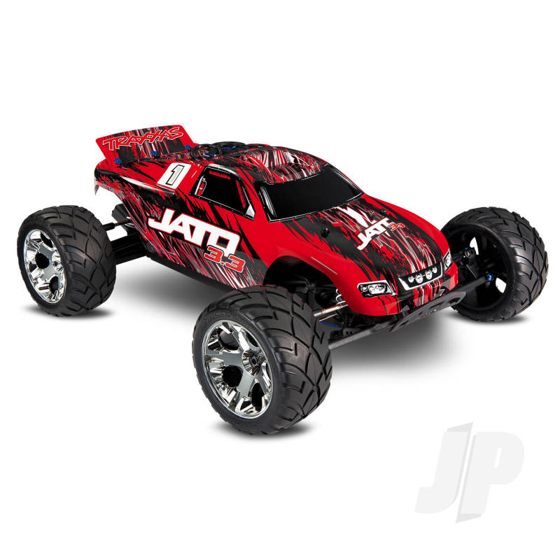 It's the only way to describe it. Combine the extreme power of the TRX 3.3 Racing Engine with the incredible Traxxas Jato and the results will leave you speechless. Stunning, jaw-dropping acceleration and face-distorting top speed propel Jato performance into the stratosphere. It's a power packed combination for excitement we couldn't resist. Bury the throttle and 60mph flies by in a mere 4.2 seconds. Top speed is over 65mph! 2nd gear wheelies? You bet! The integrated wheelie bar is included!