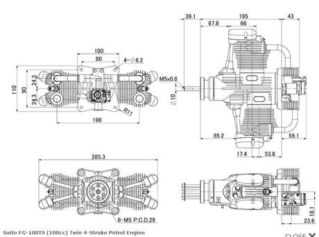 Saito FG-100TS (100cc) Twin 4-Stroke Petrol Engine
