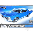 By 1967, nearly every American car manufacturer had a competitor to Pontiacs GTO in their lineup. The 'Tiger' became the 'Great One' for 1967. MPCs scale kit replica of this classic muscle car features a 400 cu. in. V8 with 4-speed transmission, separate rear suspension and exhaust detail, bucket seats, floor shifter with console, along with an optional supercharger, headers, optional custom wheels and racing bucket seats.