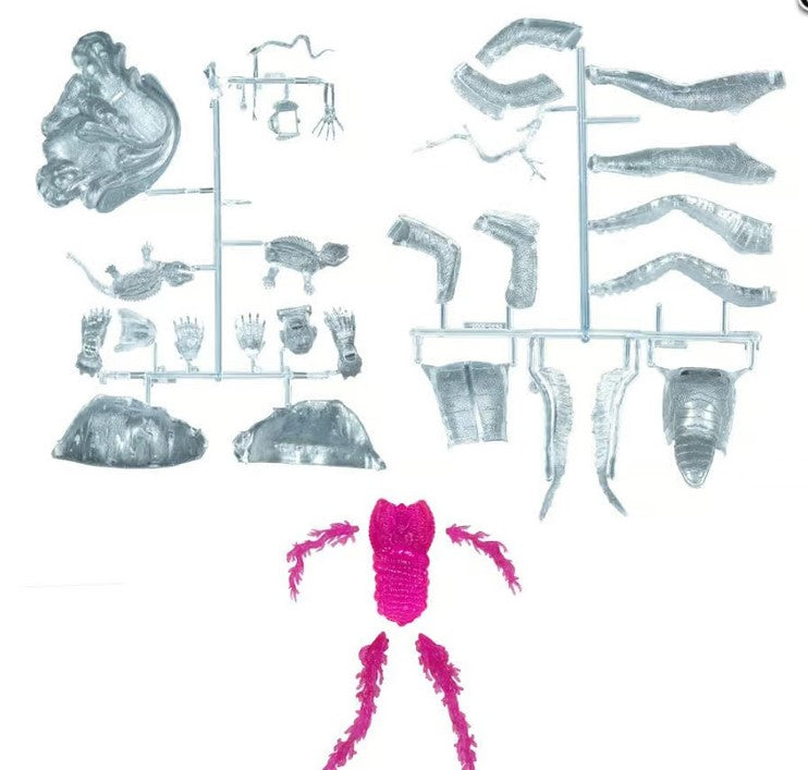 Inside the plastic shell, you will assemble the bright pink guts of this part man, part fish, part reptile (but ALL monster) Creature from the Black Lagoon! Assemble it at your own peril, because the Visible Creature 1:8 scale model kit will make a frightfully good addition to your Universal Monsters collection!