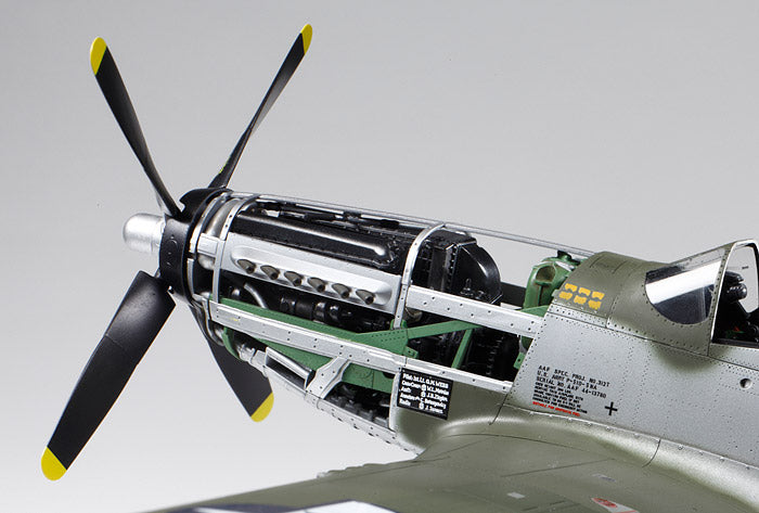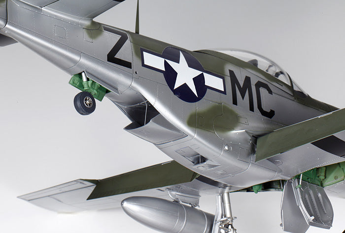 The P-51D Mustang is considered by many to be the best fighter aircraft of WWII. It incorporated advanced features such as a laminar flow wing and an efficient radiator design. Powered by the Packard-built Rolls-Royce Merlin V-1650 engine, it demonstrated superior performance and is widely considered to be the definitive variant of the Mustang. They were used to escort bombers such as B-17s and B-24s all the way to Germany and helped the Allies gain air superiority over Europe. Tamiya has reproduced this famous aircraft with utmost accuracy for addition to the 1/32 Scale Aircraft Series. The unmistakable form of the P-51D is accurately reproduced based on actual design drawings of the aircraft as well as thorough study of actual examples. Line it up with Tamiya's 1/32 scale Supermarine Spitfires and A6M Zeroes for a display of iconic WWII fighters.