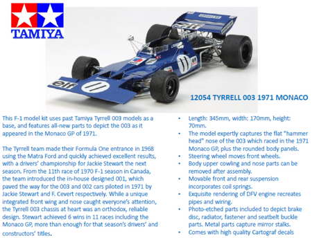 Tamiya 1/12 TYRRELL 003 1971 MONACO Kit