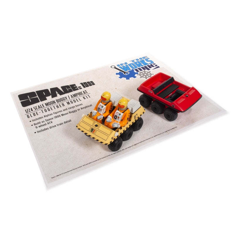 Initially included as part of MPC's Nuclear Waste Area 2 Diorama, MPC are now releasing the buggy with added features in its own kit! Now featuring interior tub with engine and chassis, this 3.25” kit also includes expanded decal sheets allowing you to build either the factory stock Amphicat ATV or the Space:1999 Moonbase Alpha Moonbuggy!