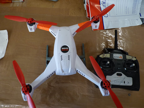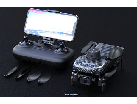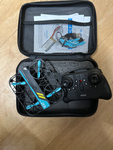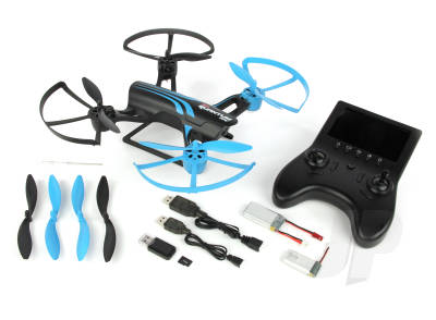 Basic camra brushed drone transmitter has phone holder and inc. blade protectors