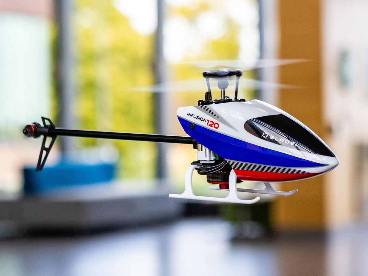 The Blade InFusion 120 helicopter features exclusive SAFE® (Sensor Assisted Flight Envelope®) technology, a revolutionary electronic flight envelope protection system that makes it easy for anyone to fly helicopters with confidence by providing flight mode versatility and Panic Recovery mode that automatically returns the heli to a level attitude.