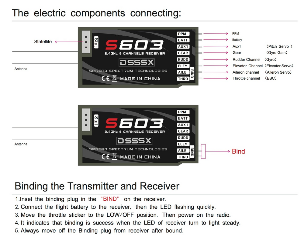 FSFly S603 6 Channel DSSS-X Receiver (Spektrum Compatible)