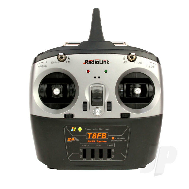 Take this T8FB, 2.4GHz, 8-channel, entry level transmitter. Equipped with FHSS frequency-hopping spread spectrum protocol that offers a superior transmission rate, enhanced interference rejection and a secure full range capability, you'll look at the specification, fall in love with the feel and begin to wonder why you really need anything more. Perfect for all R/C disciplines from aircraft to quadcopters, through boats, cars and even trucks and locomotives, this is one transmitter that won't be collecting dust. Take a look at the full feature-set and make special note of its low power consumption, ease of use, wireless trainer link capability (optional R8FM module required) and, crucially, the fact that it's supplied with two R8EF 8-channel receivers. Crikey!
