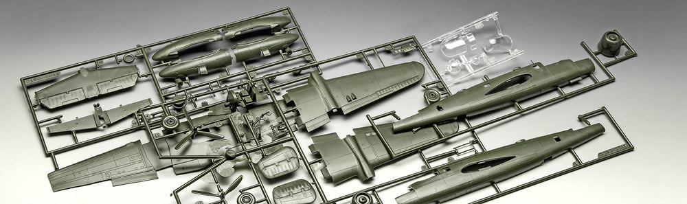 Simple model kit of the B-25 Mitchell, a 2-engine bomber of the USAAF.