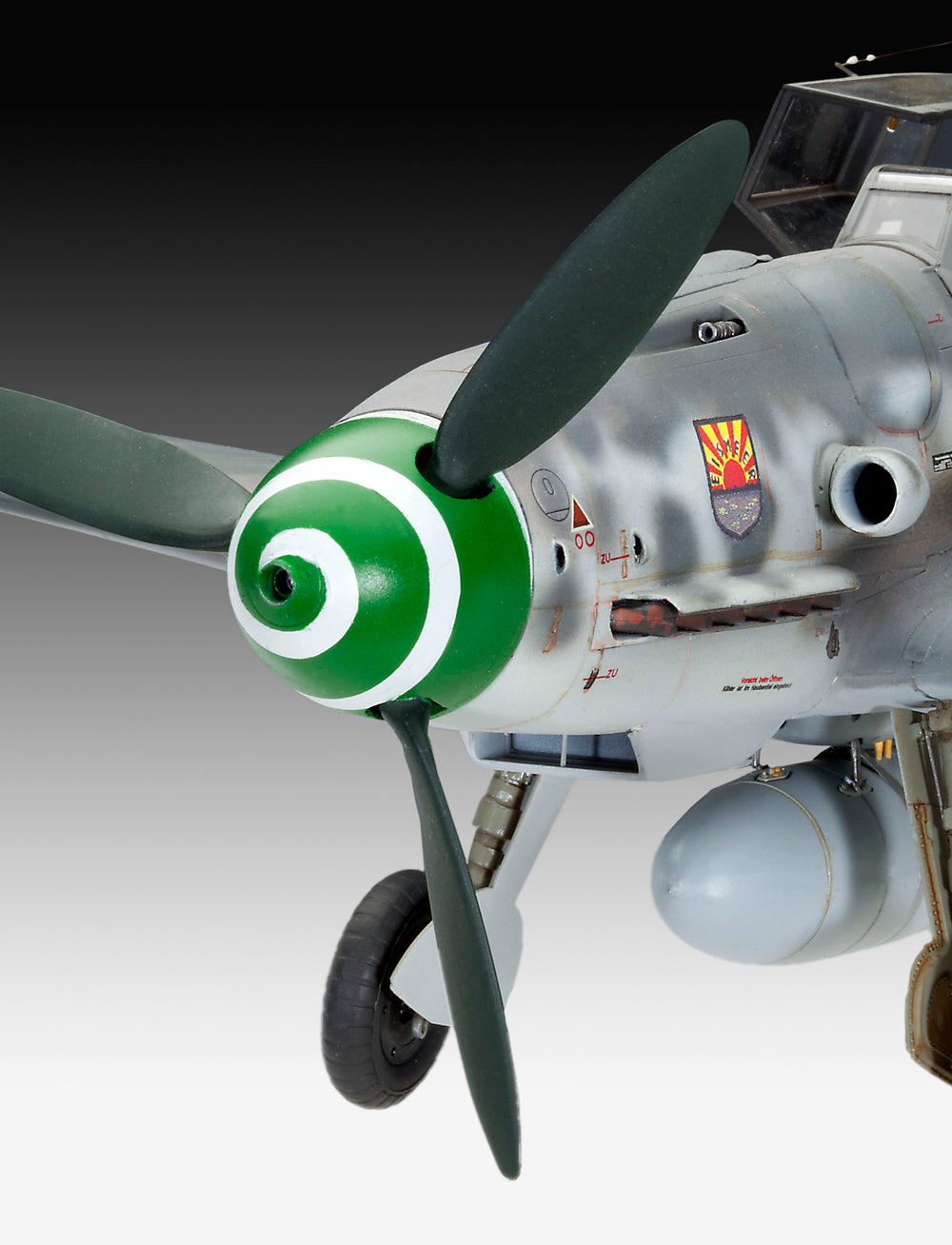 The G-6 was used extensively on all fronts from March 1943 until the end of the war. Later production lots of the Bf109 G-6 were given fixed rear cab windows in a one-piece design which vastly improved visibility to the rear. During a further modification the tail was fitted with a rudder that was higher and had a larger area than previous models. With a total of 13000 units, the G-6 was the most widely produced of all Bf109's.