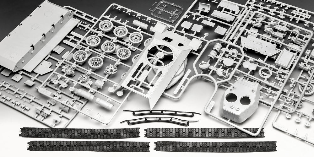 Plastic model kit (not assembled). Illustrated, multilingual building instructions, decals