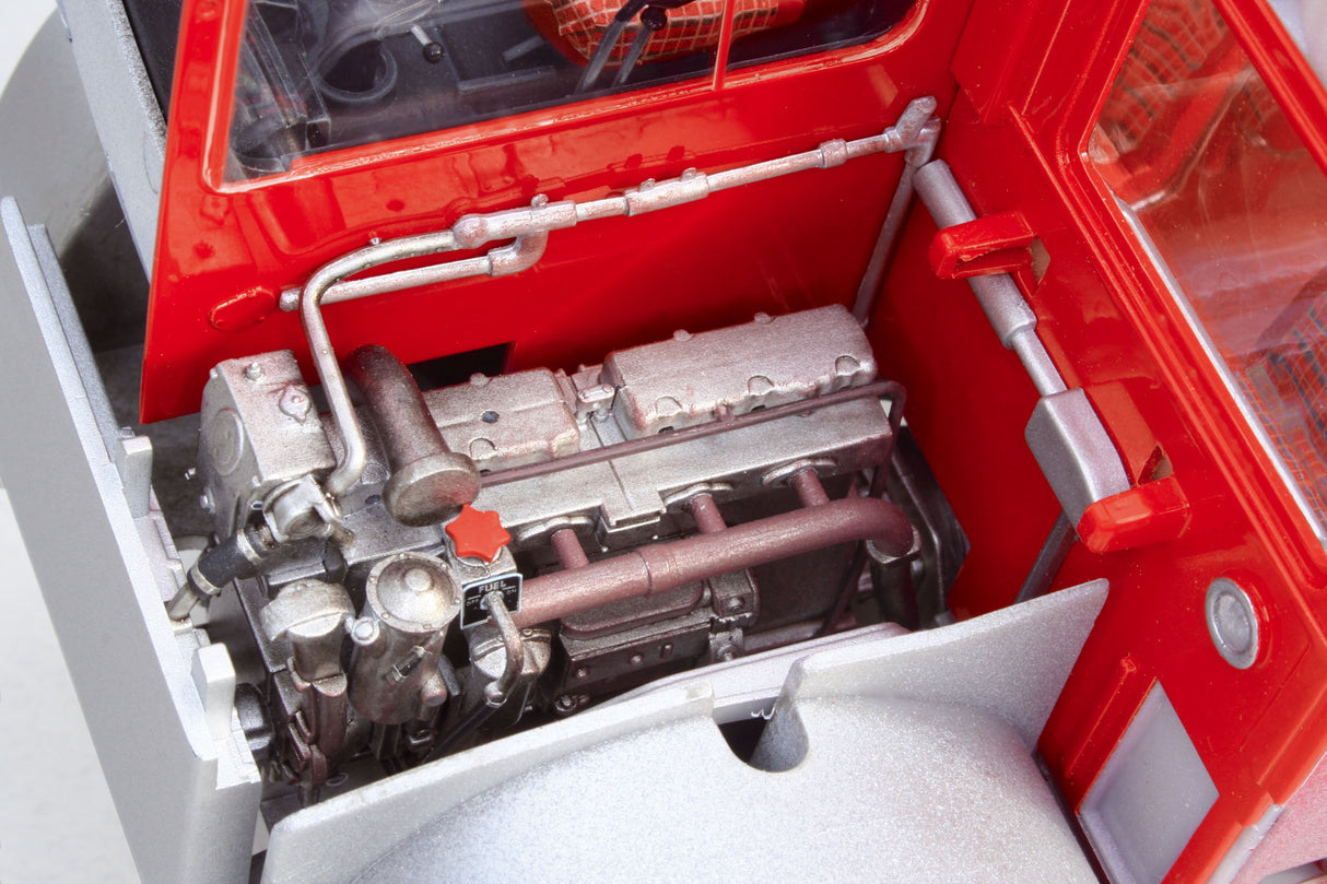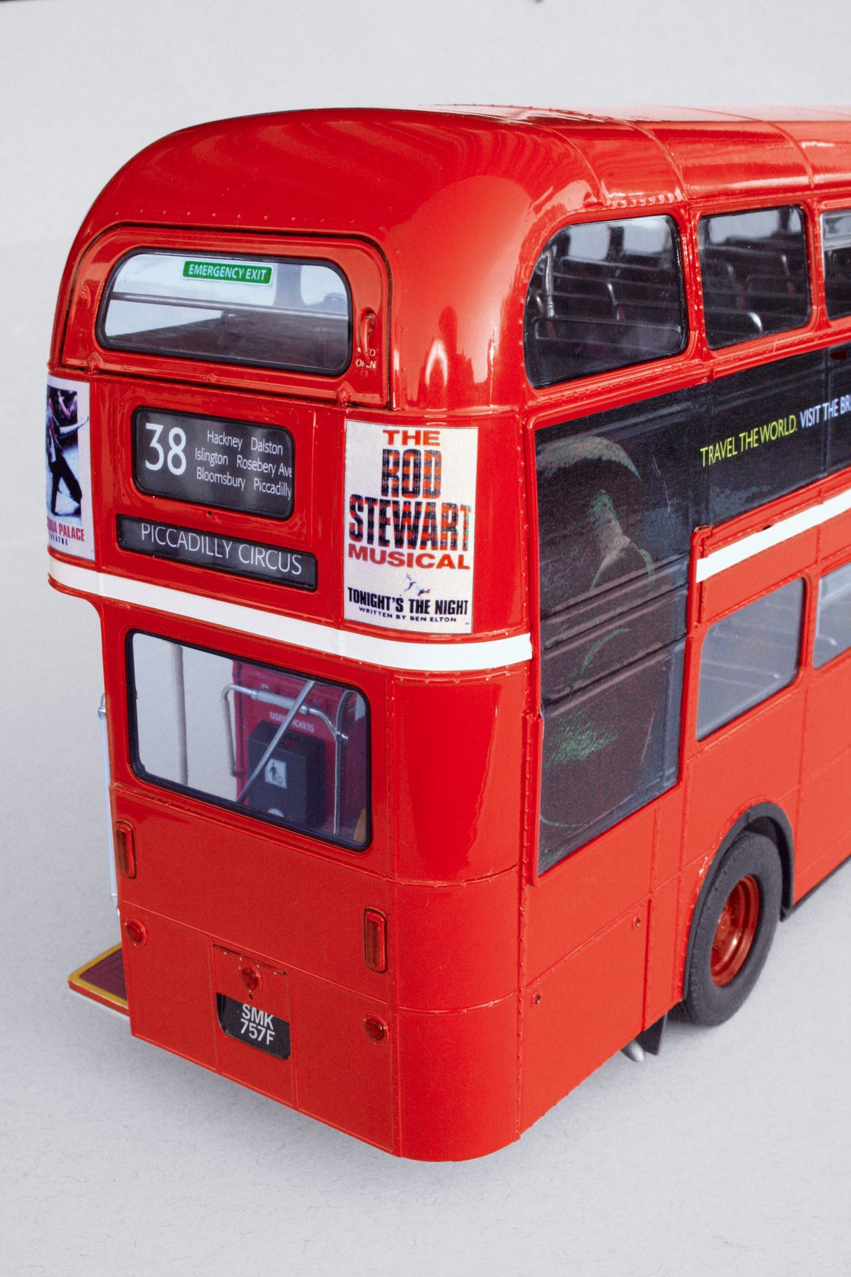 The AEC Routemaster was presented to the public for the first time in 1954. Compared with the previous bus types the Routemaster, with its integral chassis and bodywork design, was considered to be a real innovation. The double-decker, which was mass produced from 1958, was in particular characterised by the open boarding platform on the rear left allowing quick "hop on and off". At the end of the 1950s a change in regulations allowed in addition the operation of over thirty-foot long buses on only two axles. Some Routemasters were subsequently divided in the middle and a central bay inserted in the middle recognisable by square windows. The new bus type, the Routemaster Lengthened, in short RML, now had room for a total of 72 passengers. The resounding success with 15 test vehicles persuaded London Transport to order a further 500 of the RMLs, which were produced from 1965 to 1968. In the 1970s more and more RMLs were in service in central London. With the constant presence of the double-deckers, kept in the typical red, on almost all routes the image of the Routemaster as a typical symbol of London was noticeably consolidated. Not until in 2005, after almost 50 years of continuous use, was the general operation of this hallmark of London discontinued. ROUTEMASTER is a registered trademark of Transport for London.