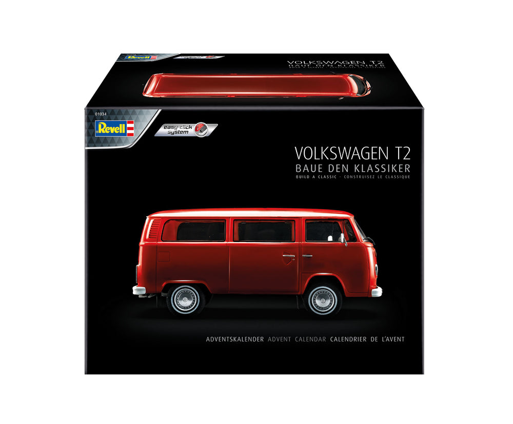 Revell Advent calendar VW T2 Bus 01034 will be backordered from our supplier. Delivery will take between 3-5 working days & orders will be despatched once completed.