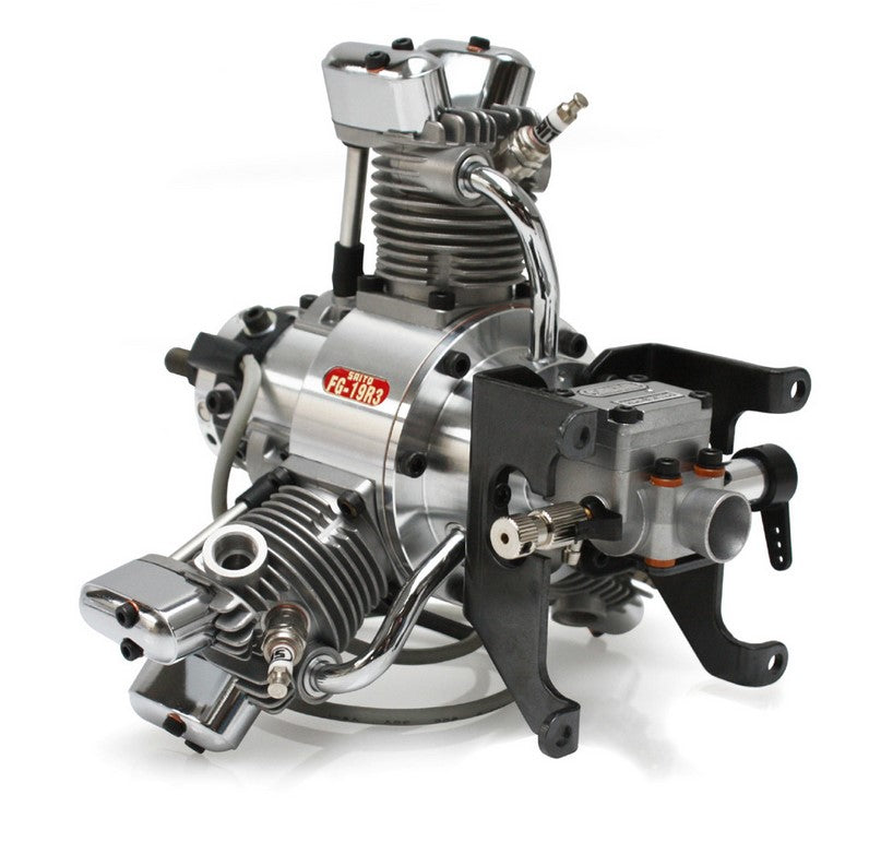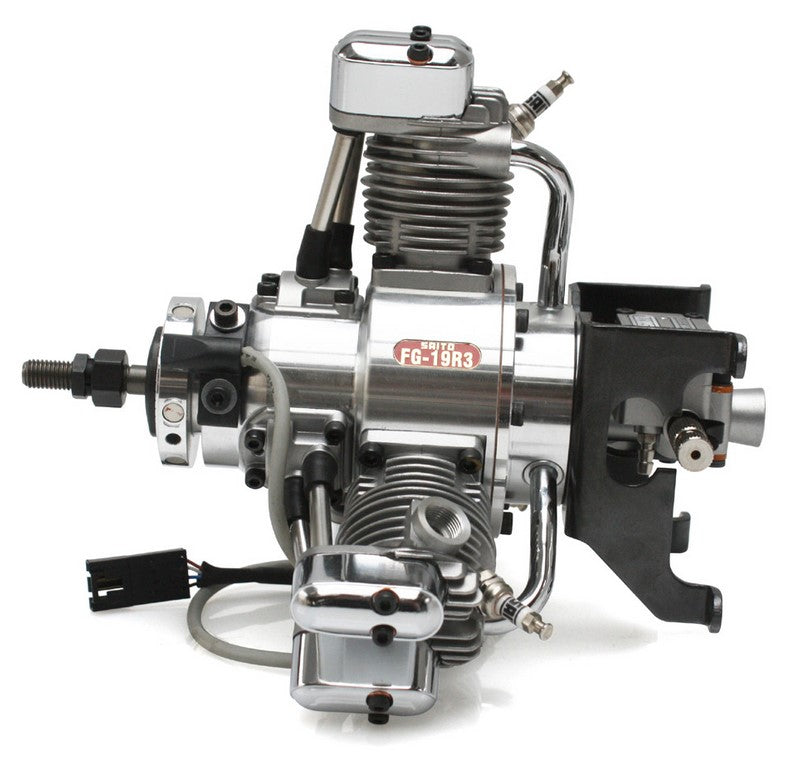 The Saito™ FG-19R3 engine is designed specifically for scale and sport models. Above and beyond the advantages of a 4-stroke gas engine, this is the engine for those who like to run clean and efficient engines. Accompanied by Saito power and precision craftsmanship, distinguished look and sweet sound, this is the engine many of you have been waiting for. Design features include an updated intake plenum and a bronze-bushed master rod. This engine provides easy starts and reliable performance due to the 2S LiPo-compatible electronic ignition. The Saito gasoline carburetor features a rotating barrel specially made for 4-stroke engines, ensuring reliable fuel feed and outstanding performance at any attitude. Complete with flexible exhaust pipes, engine mount, and electronic ignition.