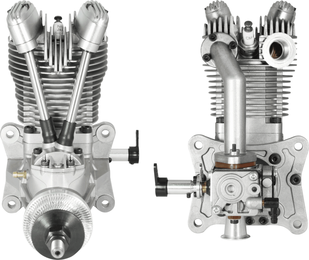 Saito FG-41X 4-stroke petrol engine with stand off engine mount integrated with the rear cover.