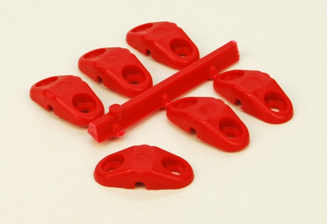 Saddle Clamps moulded in Polyprope for durable strength, mainly used for piano wire undercarriages and Bi plane cabanes.
