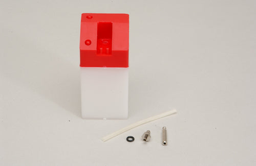 The diagram shows how the Tidy Tank Filler together with a ‘T’ Fuel Joining Tube (not included with tank) are used to pressurise the tank from the motor silencer. The lower line being the feed and the upper going to the silencer.