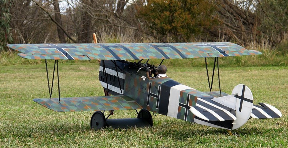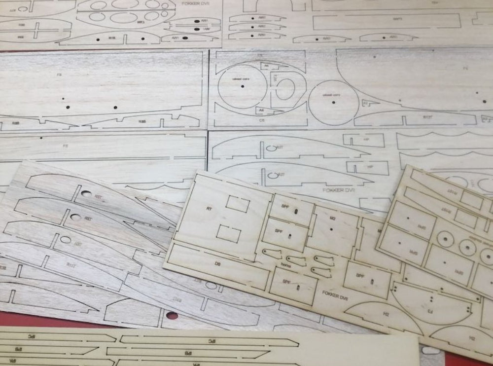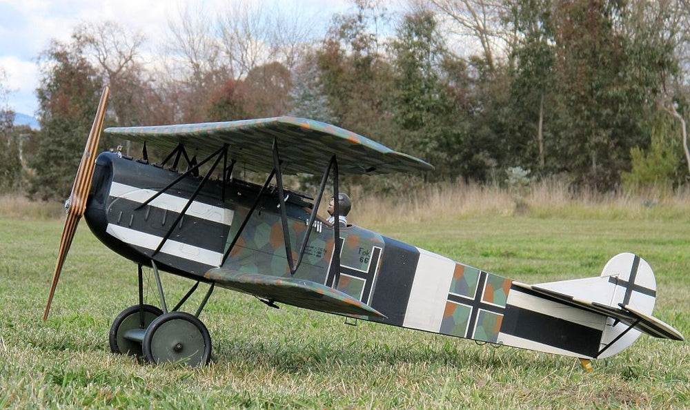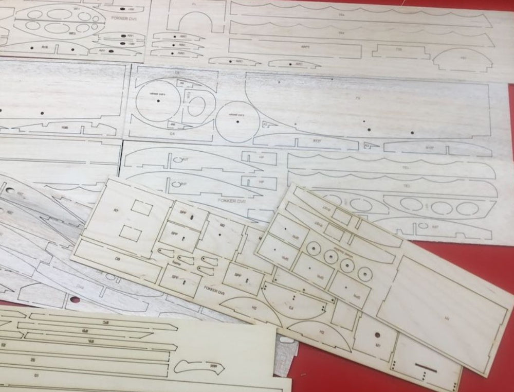 Our Fokker DVII is modelled at Wingspan 38” span and a scale of 1.3”=1ft. It is suitable for 400 size brushless motors and the kit includes laser cut parts in balsa and plywood plus a multi sheet plan.