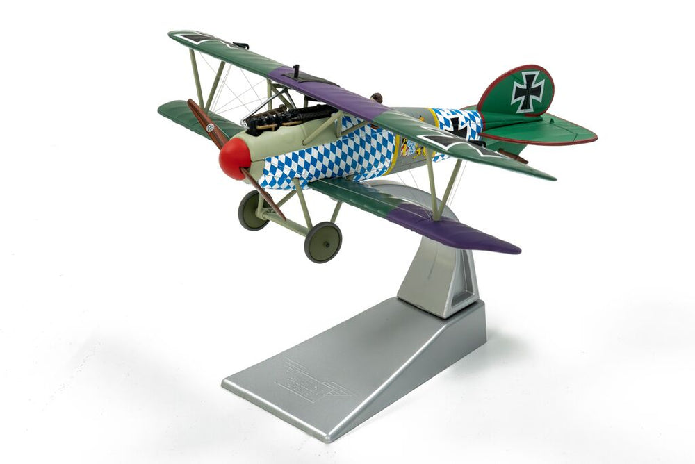His scheme was linked to his heritage and featured an elaborate fuselage of blue and white diamonds, a representation of the Bavarian coat of arms and crest. Wolf used this aircraft following the introduction of the Albatros D.V during the summer of 1917.