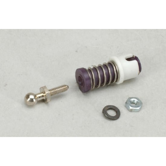 These ball joints are made of glass filled nylon and provide a full range of motion, permitting off-axis operation. Unique, spring loaded, glass reinforced sleeve holds hardened steel ball firmly in place yet is easily released for changes and final adjustment. These are ideal for throttle connections and internal servo arms.
