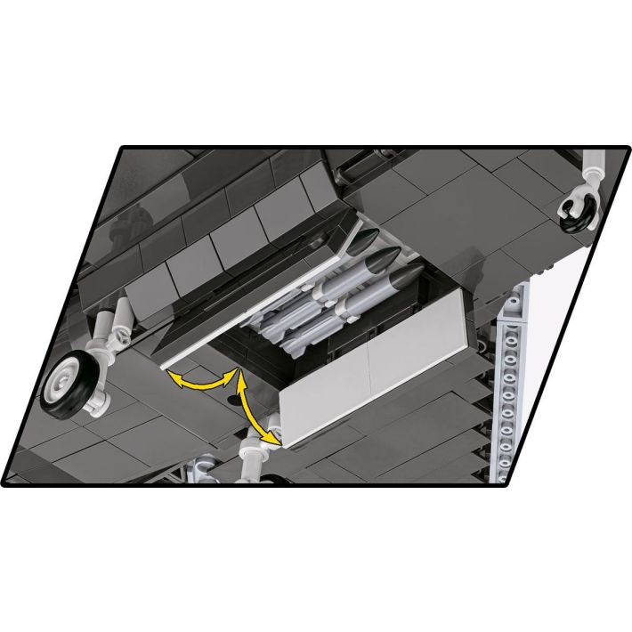 The plane consists of 695 elements including prints. For this set, we have developed completely new elements characteristic of the F-22: the nose of the aircraft with the cabin and vertical stabilizers. The model is perfectly finished and smooth just like its real counterpart with STEALTH technology. The set includes an opening cabin in which you can place a detailed pilot figure wearing an oxygen mask. The plane's landing gear can also be easily dismantled to better display the model on the included display stand, which also includes a plate with the plane's name and the US flag printed on it. There are brick bombs in the opening hatch, as well. The detailed block model of the legend of the skies is a real treat for collectors and enthusiasts of military technology and block modeling. Thanks to the use of high-quality ABS and lightweight construction our model has the features of stealth technology and is undetectable to radars, just like the real thing.