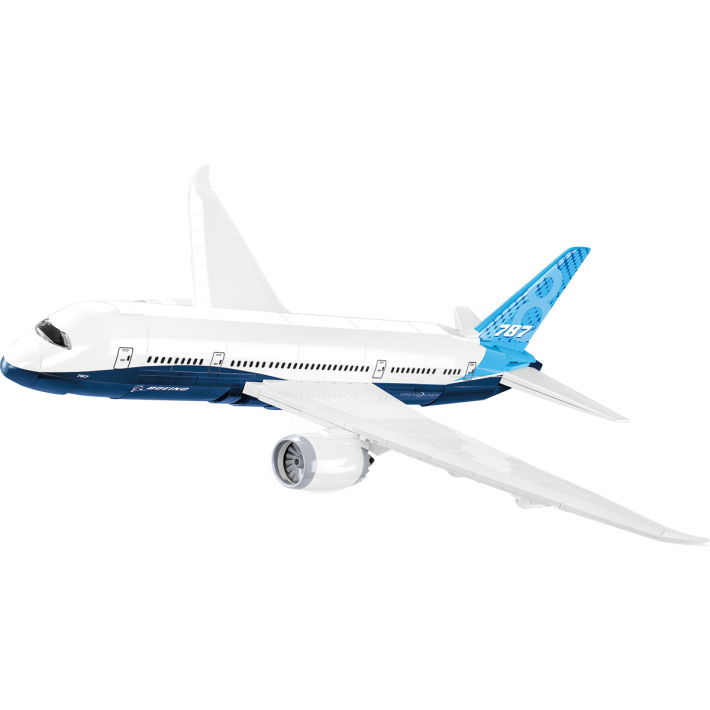 The model of the latest passenger plane Boeing 787-8Ö DreamlinerÖ has been faithfully reproduced from 836 COBI construction blocks. Being designed in the 1:110 scale allows the set to faithfully reflect the shape of the original. The aircraft is equipped with rotating wheels and a folding landing gear. Engines with rotating rotors are mounted under the realistic wings.