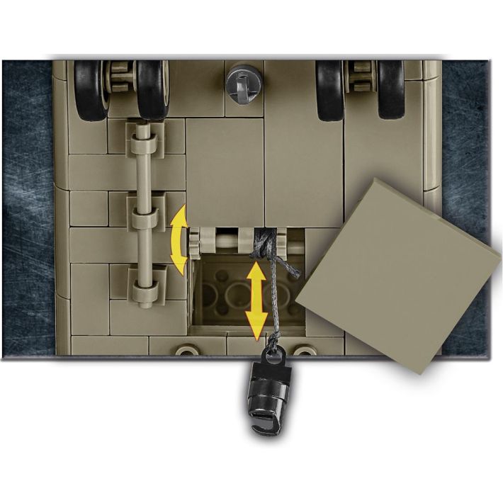 From the COBI building block kit you can build the carefully designed 1:48 scale of the hugely popular American CH-47 CHINOOK helicopter. The model has been covered with high-quality prints that do not wear out even during intense fun. The prints mimic the painting of the vehicle in the colors of the USA and imitate the details of the CHINOOK. The helicopter is equipped with rotating propellers and an opening flap. A rope with a capture hook comes out of the bottom of the helicopter for added fun! Two pilot figures are also included.