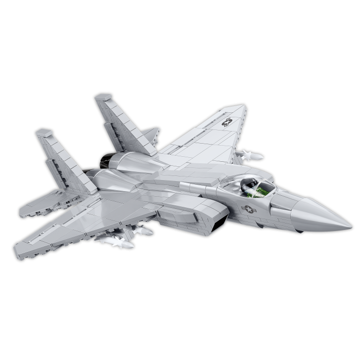 The COBI model of the F-15 EagleÖ aircraft was entirely designed with COBI construction blocks. The use of as many as 590 pieces makes it possible to faithfully reproduce the characteristic look of the aircraft in the model scale 1:48.
