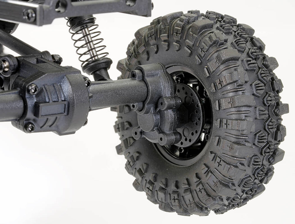 Oil filled, adjustable big bore shock absorbers with aluminum caps can be mounted from a wide selection of revised mounting points to suit your terrain. An increased track width, paired with super sticky, oversized block tyres help produce surefooted drivability.