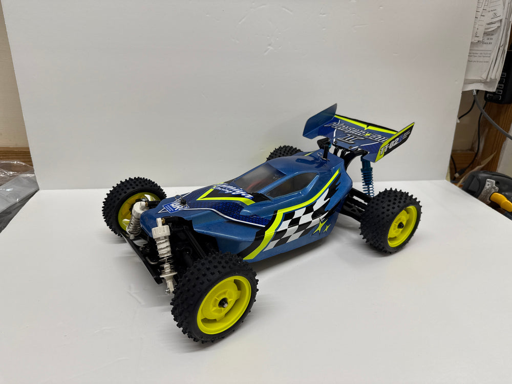 THIS CAR COMES PRE-BUILT WITH A 3000KV BRUSHLESS MOTOR AND 50A SPEED CONTROLLER COMBO AS WELL AS A FAST, LOW PROFILE SERVO AND UPGRADED ALUMINIUM REAR SHOCK ABSORBERS; FINISHED WITH METAL BALL RACES INSTEAD OF THE STANDARD PLASTIC BEARINGS. Sold as seen in pictures