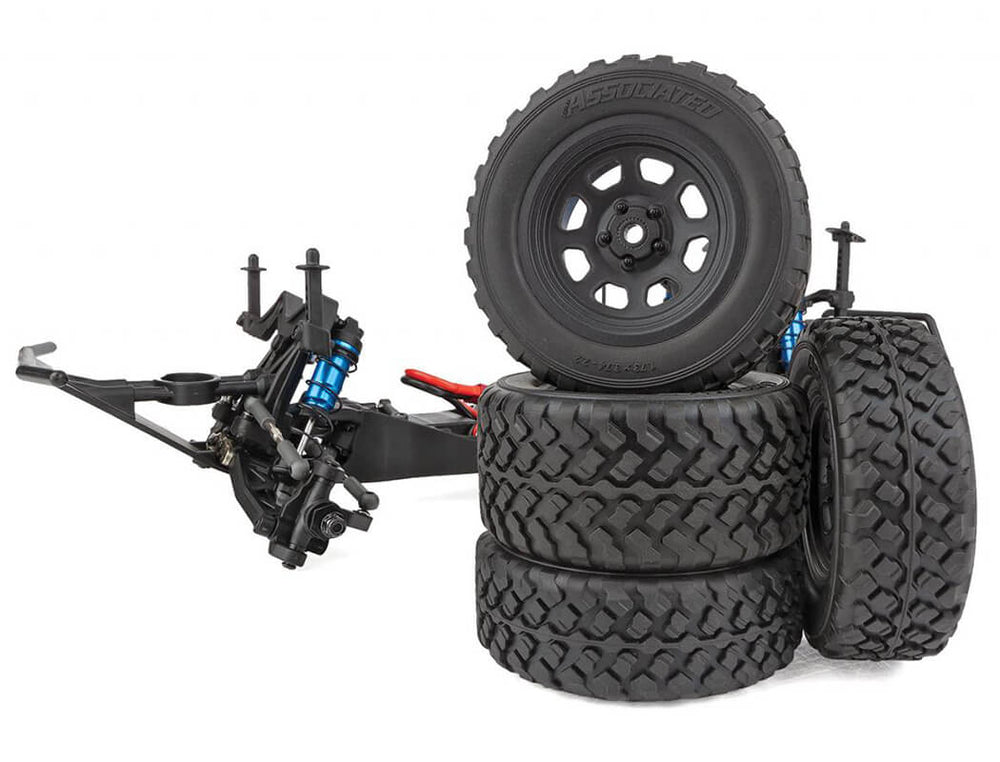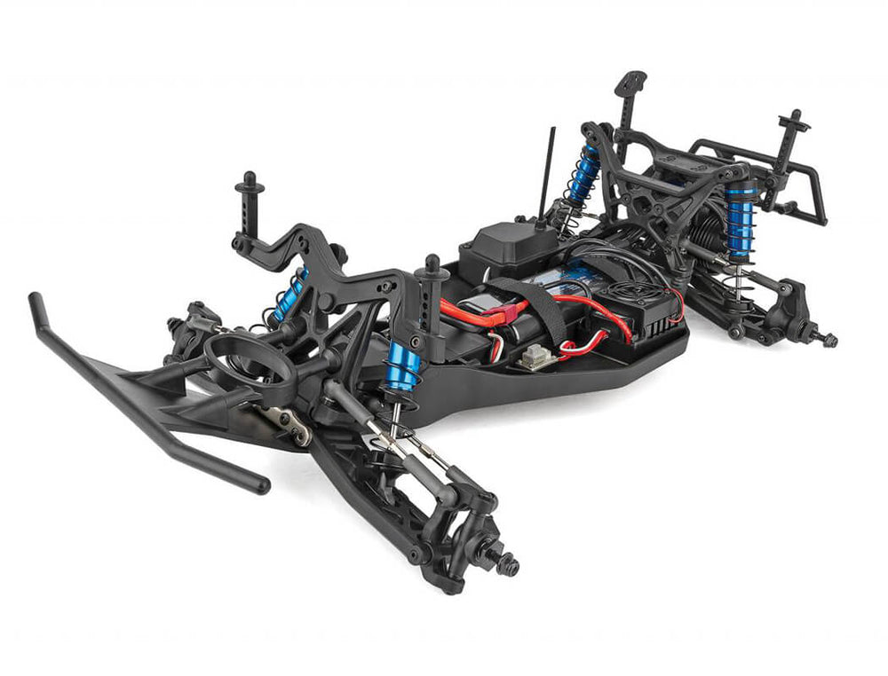 The Pro2 LT10SW short course truck is based on the 9-time ROAR Short Course National Championship-winning trucks, featuring a water-resistant high-power Reedy brushless speed control and 3300kV brushless motor, a 2.4GHz 2-channel radio system as well as our DVC (Dynamic Vehicle Control) receiver unit with built-in adjustable digital gyro. Add to that a Reedy Power metal-gear, digital high-torque servo and a water-resistant enclosed receiver box. All of this packaged together in an outstanding factory-finished blue and white body. And to keep you sticking to the terrain, this LT10SW short wheelbase beast will keep you cornering with the included high-grip all-terrain tires and lightweight wheels. The time for tearing up the track is now!
