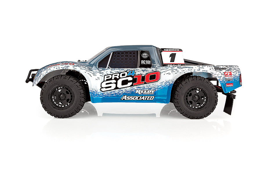 The 2.4GHz 2-channel radio system includes an adjustable digital gyro, which allows vehicle stability to be adjusted to match the terrain, and a digital high-torque Reedy servoround out the Pro4 SC10 as a potent short-course contender!