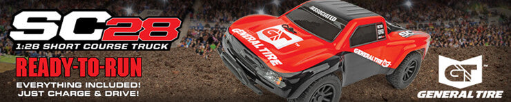 With over 100 years' experience and prowess, General Tire GTR has been manufacturing quality products and continues to perfect its process. They are a proud supporter of the Automobile Racing Club of America (ARCA). With General Tire GTR and Team Associated's combined knowledge and experience, this makes the SC28 GT a true joy to drive and manoeuvrer. So grab a friend and create your own Short Course Truck Racing Series. Rip around the corners, fly over the jumps and speed across the finish line! Will you make it into the winner's circle?