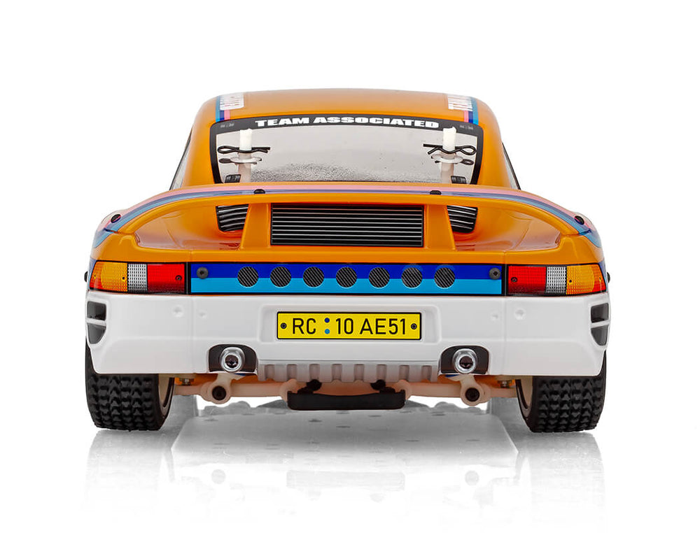 Bring the golden era of RC racing into the modern age with this rally-bred powerhouse, outfitted with a new aluminum gold tub chassis plate and iconic RC10 livery decal sheet. The clear 3-piece rally body set, complete with rear bumper and wing, delivers aggressive styling and aerodynamic performance, while injection-molded brake calipers and rotors add realistic scale detail. New rally shock towers, gold anodized aluminum shocks, and a fully adjustable front suspension with upgraded upper arms and turnbuckle set give you the precision handling needed to dominate any surface.