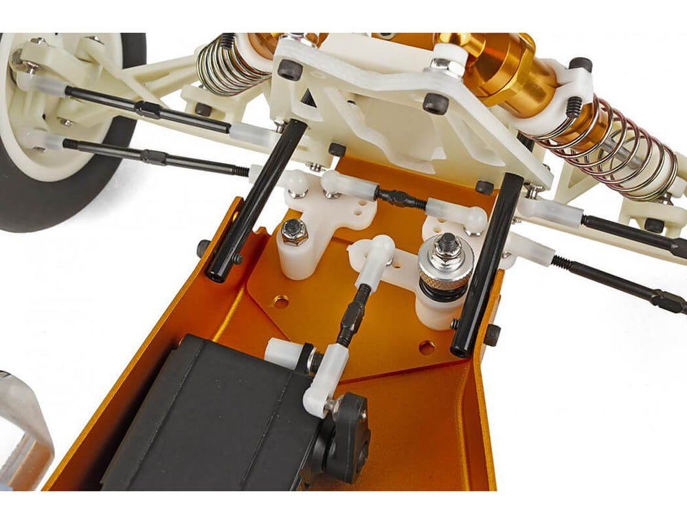 • Associated’s legendary deep-drawn aircraft alloy monocoque tub chassis has been carefully adapted to gas power and features a laser etched RC10GT logo.