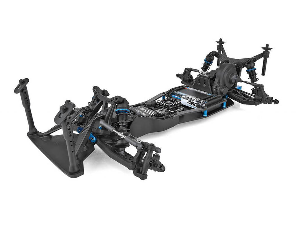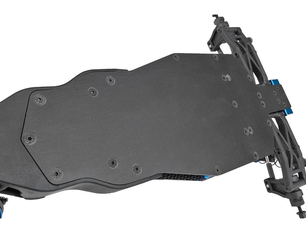 - New mid-motor low centre-of-gravity G10 fibreglass chassis with updated O-Ring battery straps that accommodate 2S LiPo “shorty” battery packs
