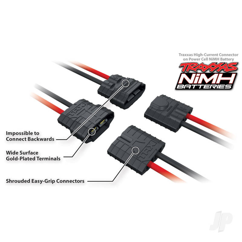 Includes battery and charger: 4-amp DC Peak Detecting Fast Charger & Traxxas 3000 mAh 8.4V 7-cell NiMH battery with iD