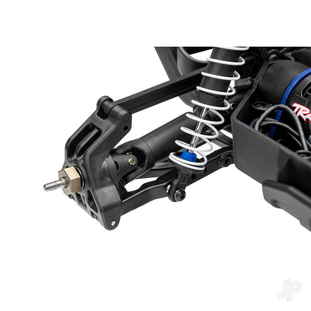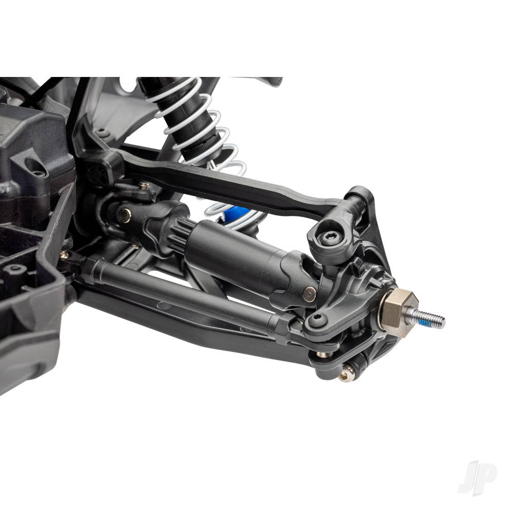 • Extreme Heavy-Duty Upgrade Kit Installed - Strengthened C-hubs, axle carriers, and steering blocks, Maxx-duty driveshafts with oversize diameter, 6 mm axles, Steel wheel hexes.