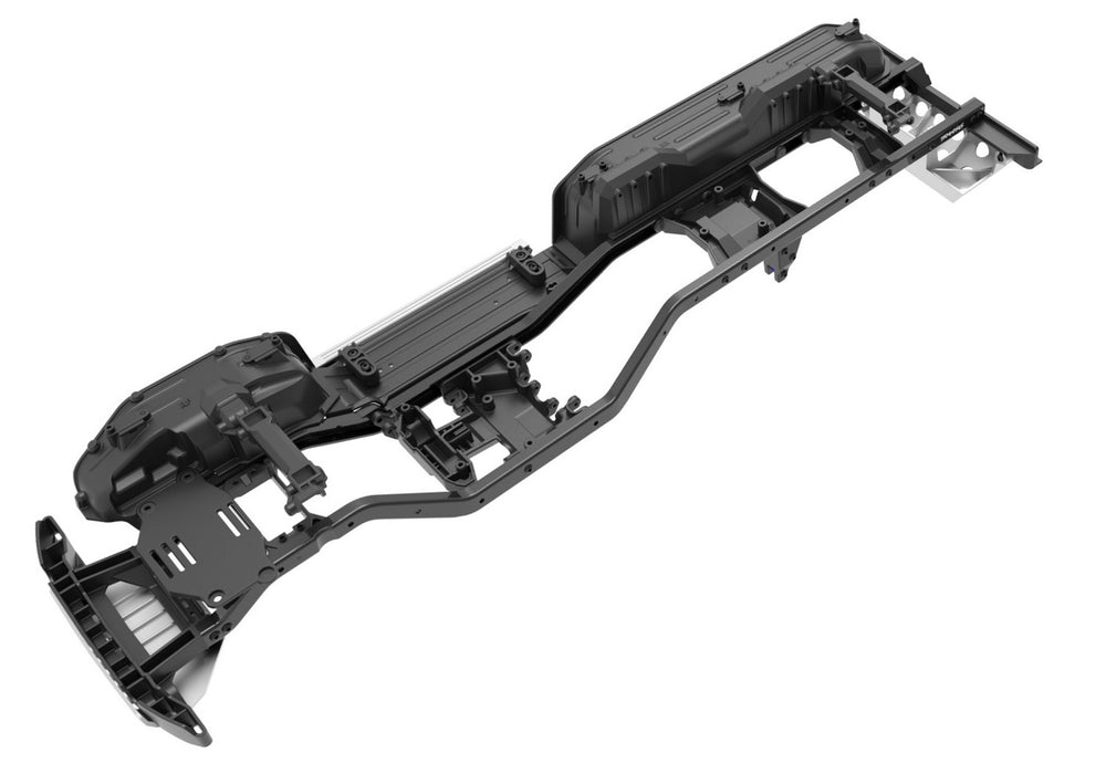Designed exclusively for the TRX-4 Mercedes-Benz G 63 AMG 6x6, thick 1.5 mm steel frame rails are formed from one solid piece for maximum strength. Extra bracing and crossmembers provide exceptional torsional rigidity to resist chassis twist under load. Full inner fenders and accurately reproduced skidplates enhance the scale realism.