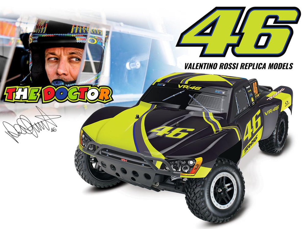 The unmistakable style of Valentino Rossi combined with Traxxas performance. Choose from the Ford Fiesta ST Rally, 1/18 scale LaTrax Rally, or short course standout Slash, each with their own version of the eye-catching VR46 livery.Slash 2WD 1/10 Scale