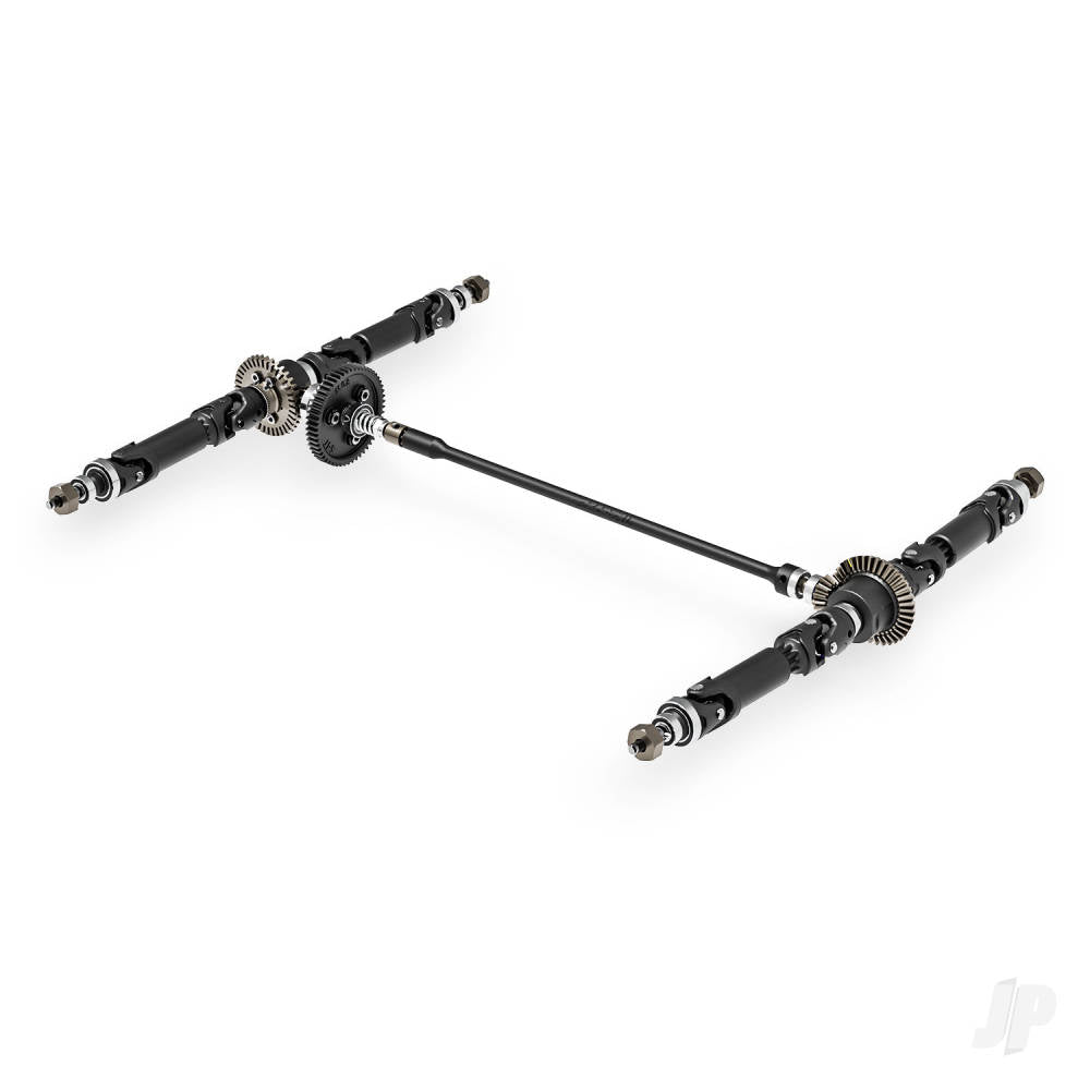 - Full-time shaft-driven 4-wheel drive with oil-filled steel gear front and rear differentials and large 32-pitch spur gear