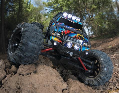 Leave it to Traxxas to stuff a 1/10 scale motor into a 1/16 scale truck! Summit's mighty Titan® 12T 550 motor delivers nearly limitless torque for tyre-scorching acceleration and all-terrain capability. With massive suspension travel, extreme Titan power, and 4-wheel drive traction, Summit tackles impossible terrain. Traxxas engineers combined all the big Summit's go-anywhere versatility with waterproof electronics to make even your wildest adventures possible. Summit's bright LED lights blaze a trail, making night runs more exciting than ever. The 1/16 Summit's just-right size lets you enjoy hours of off-road fun anytime, anywhere!