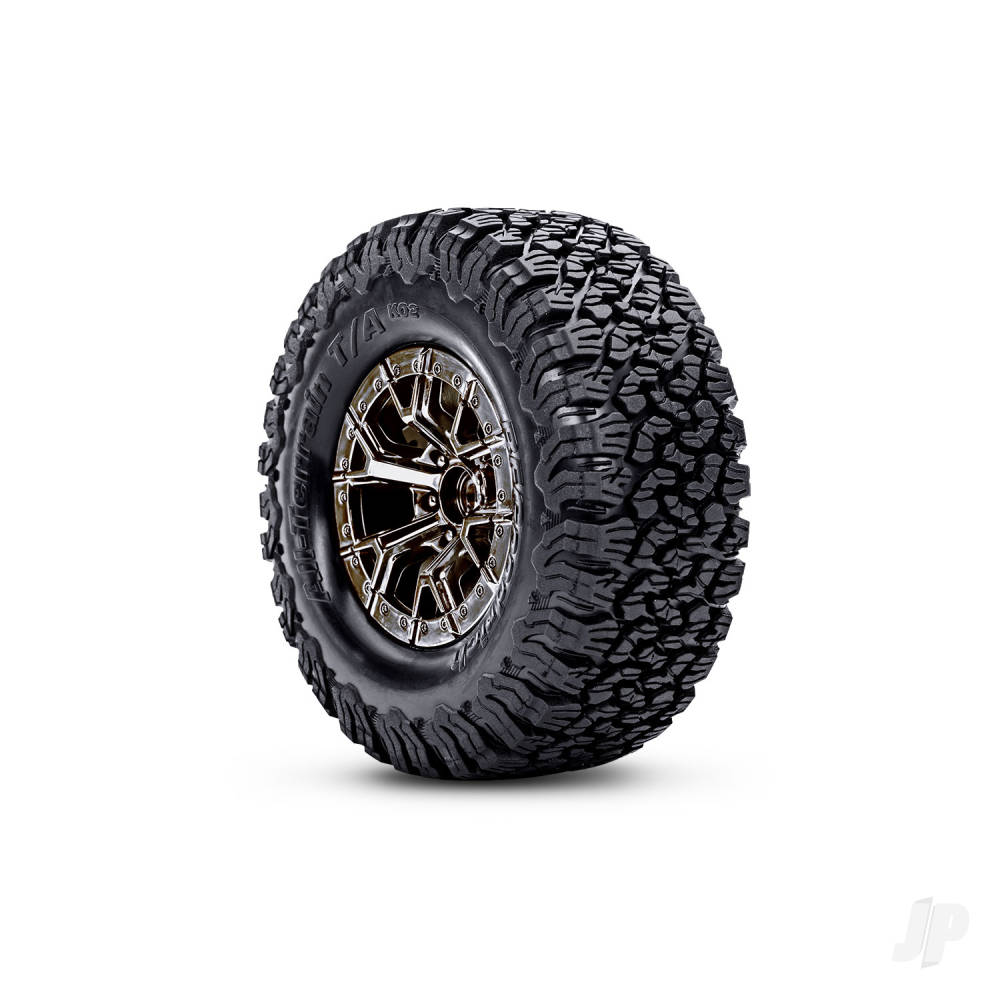 - Licensed Ford® replica option wheels 2″ outer diameter, 3″ inner diameter and Licensed BFGoodrich® All-Terrain T/A® KO2 tyres