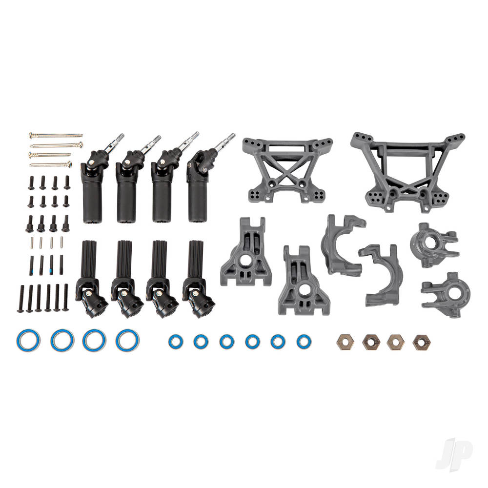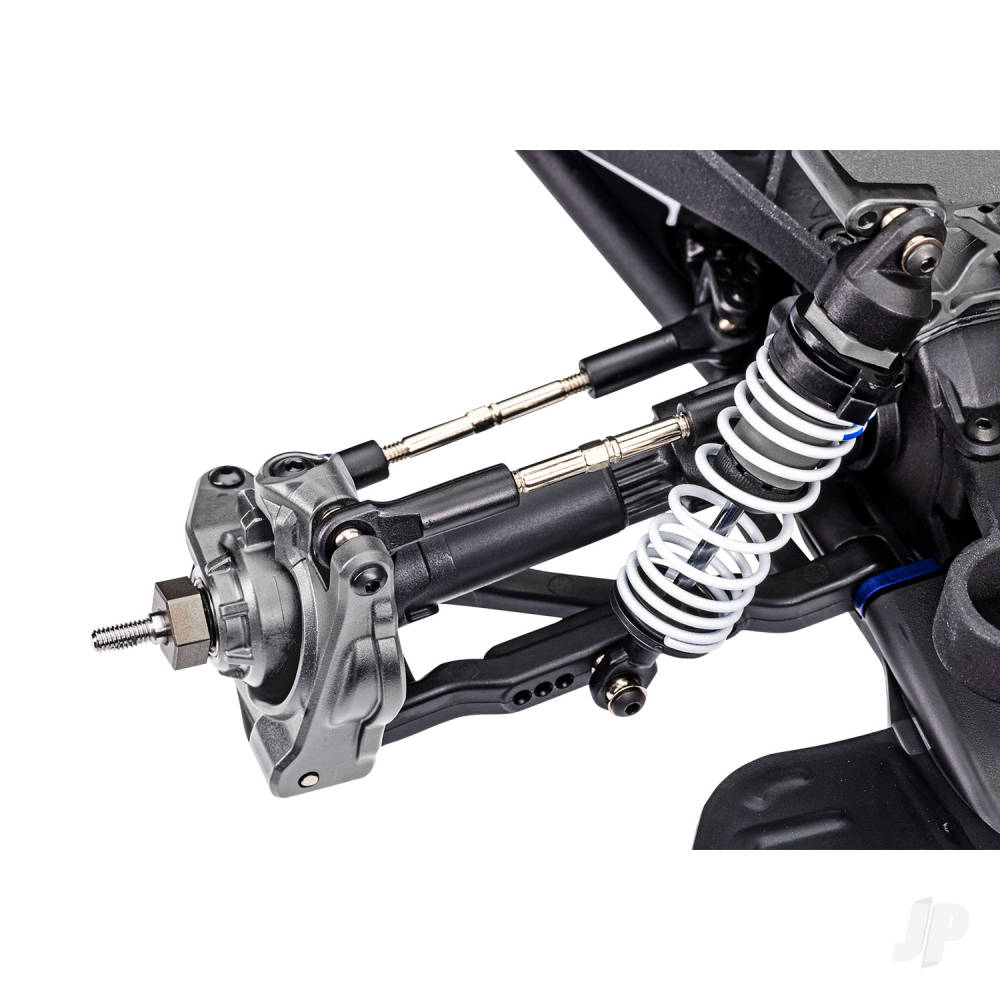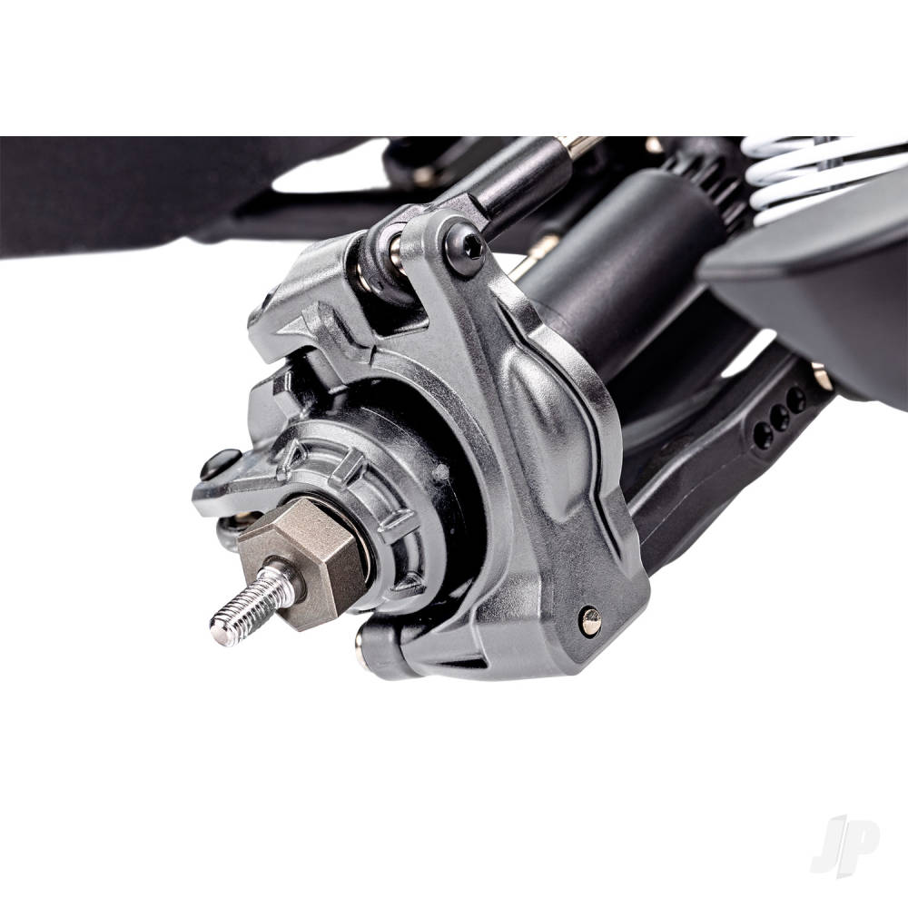 - Extreme Heavy Duty Upgrade Kit Installed including strengthened C-hubs, axle carriers, steering blocks, and shock towers, extreme heavy duty driveshafts, oversize diameter, 6mm axles, and steel wheel hexes