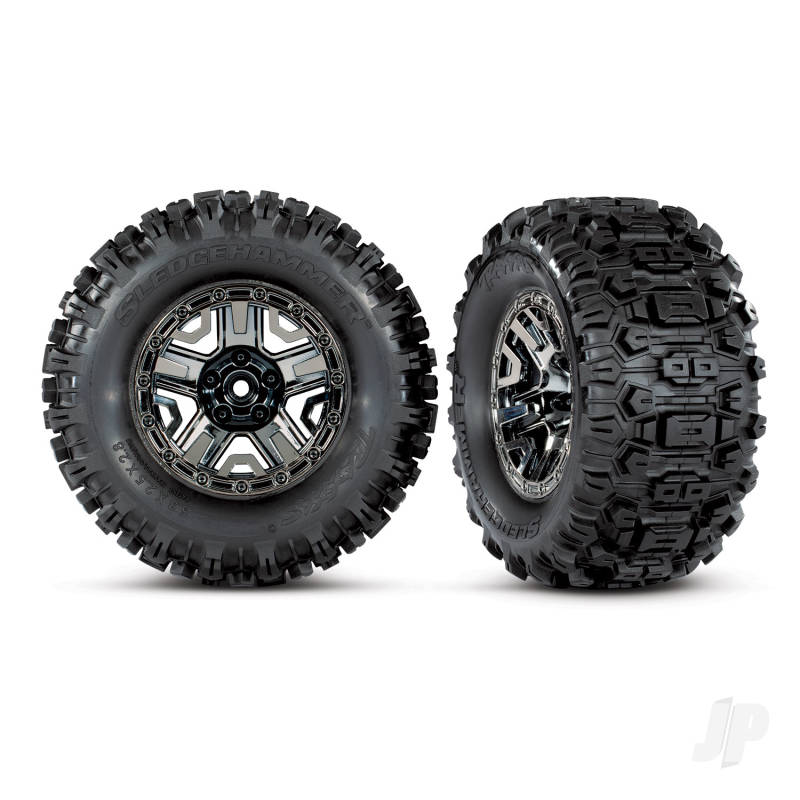 Large 2.8in black chrome wheels with tall 5.3in Sledgehammer tyres