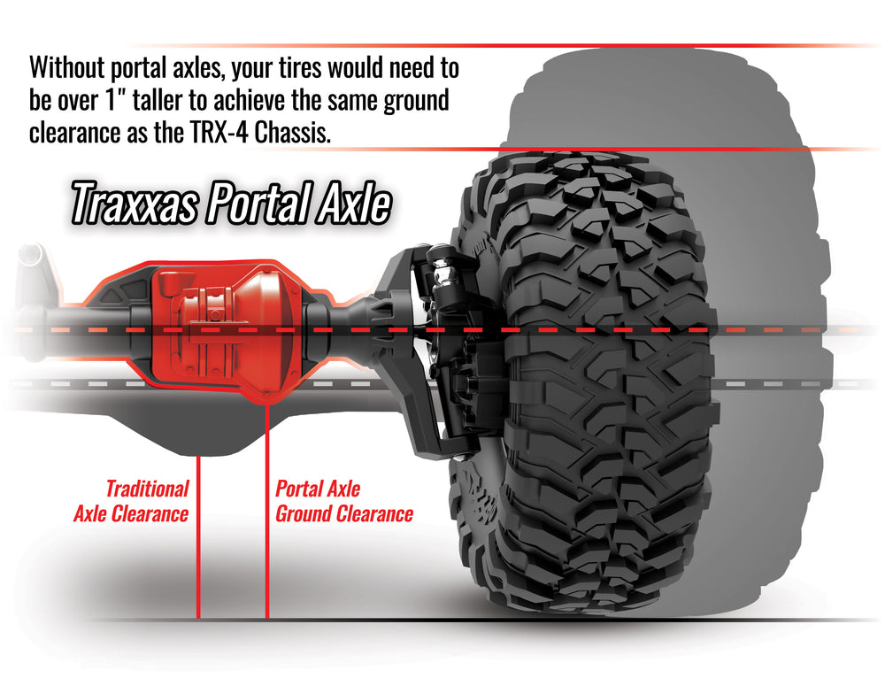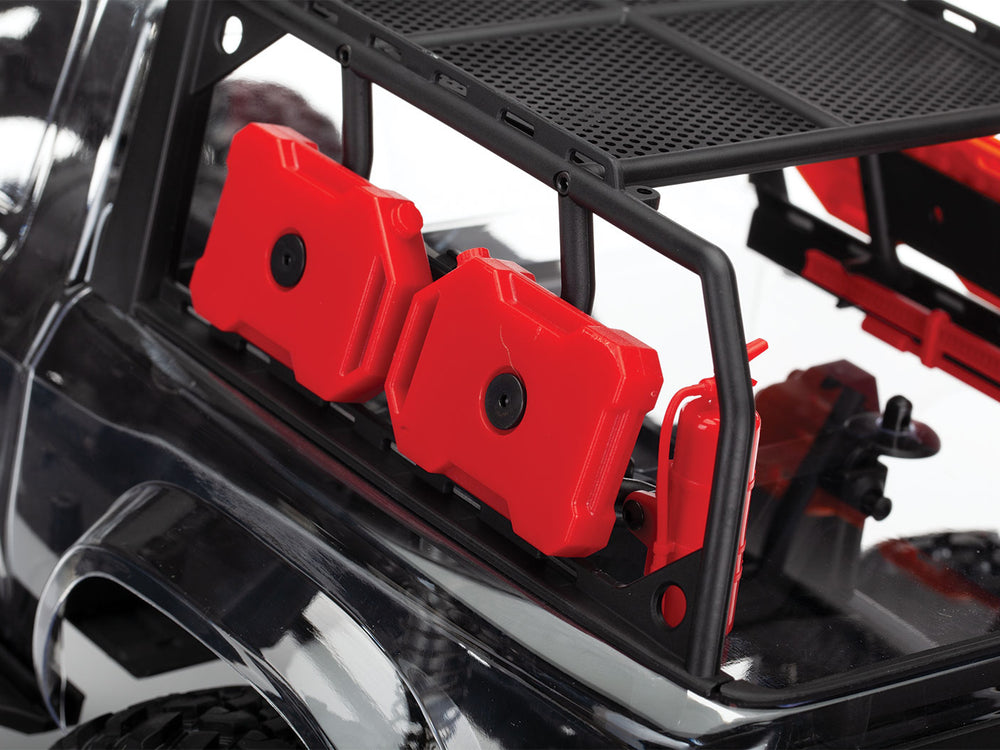 The Traxxas TRX-4 Sport Kit comes fully outfitted with an entire complement of scale accessories as standard equipment. The expedition rack not only looks great, but provides rugged protection for the body. The body and expedition rack are outfitted with a replica snorkel, side mirrors, traction boards, fire extinguisher, jack, and gas cans for maximum scale detail. The front and rear injection moulded grill and tail gate also include lenses to make installing LED lights a breeze!