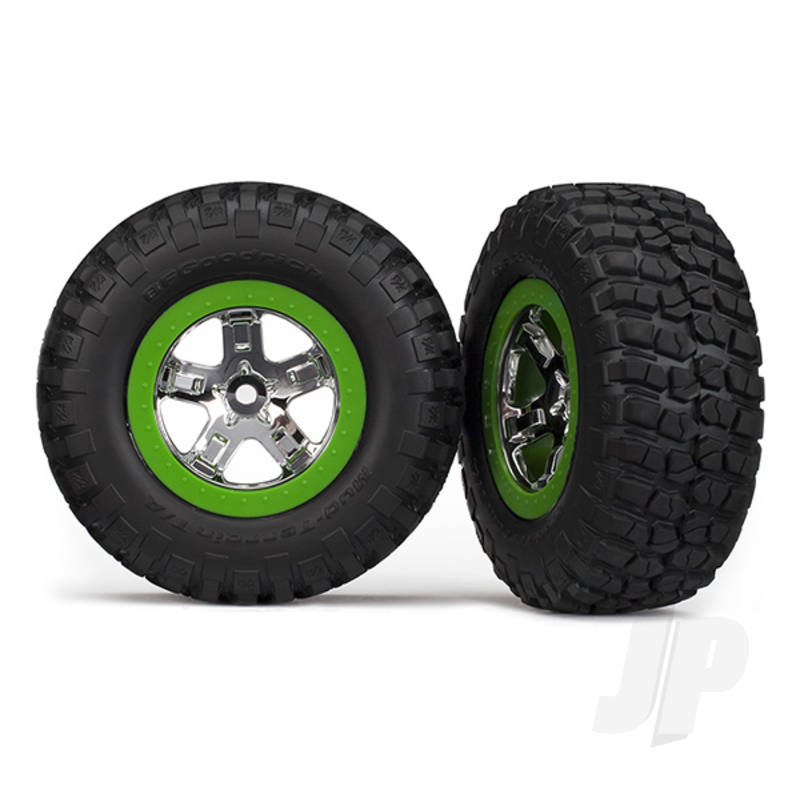 Traxxas Accessories/Car/Wheels & Tires Tyres & Wheels assembled glued (SCT chrome green beadlock wheel BFGoodrich Mud-Terrain T / A KM2 Tyre foam inserts) (2pcs) (2WD front only)